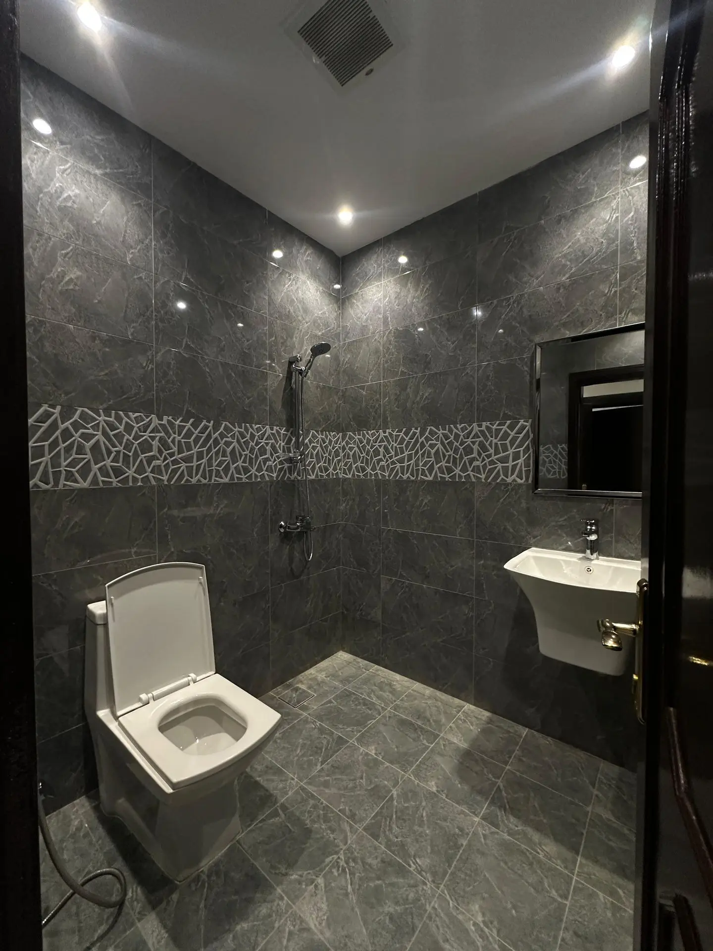 أيضاً تم صيانة أعمال الكهرباء مع دهانات جديدة وجبس بورد مضاء للمطبخ.